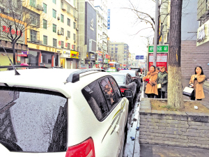 近日,記者在安康城區(qū)觀察發(fā)現(xiàn),大橋路、東大街、江北大道、育才路等路段,機動車占道現(xiàn)象非常嚴重,公交車??空镜能囄槐凰郊臆囯S意占用,導(dǎo)致公交車無法進站,只能??吭谥鞲傻郎?,人行道盲道也被車輛堵塞,不僅影響道路交通、市容市貌,還存在安全隱患,給市民出行帶來很大不便,希望相關(guān)部門加大整治力度。記者 寇峰 魏濤 攝?