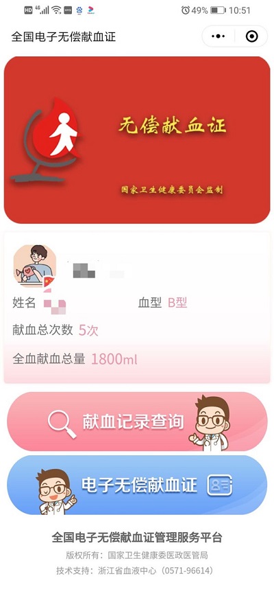 隨著電子信息技術(shù)的發(fā)展,許多憑證開(kāi)始由線下走向線上。2020年6月14日,全國(guó)電子《無(wú)償獻(xiàn)血證》正式上線運(yùn)行,這也意味著從現(xiàn)在開(kāi)始,獻(xiàn)血者可以通過(guò)國(guó)家衛(wèi)健委推出的“全國(guó)電子無(wú)償獻(xiàn)血證“客戶端小程序隨時(shí)查詢自己的獻(xiàn)血記錄,實(shí)現(xiàn)用血費(fèi)用報(bào)銷(xiāo)等,電子無(wú)償獻(xiàn)血證與紙質(zhì)版《無(wú)償獻(xiàn)血證》則具有同等效力。