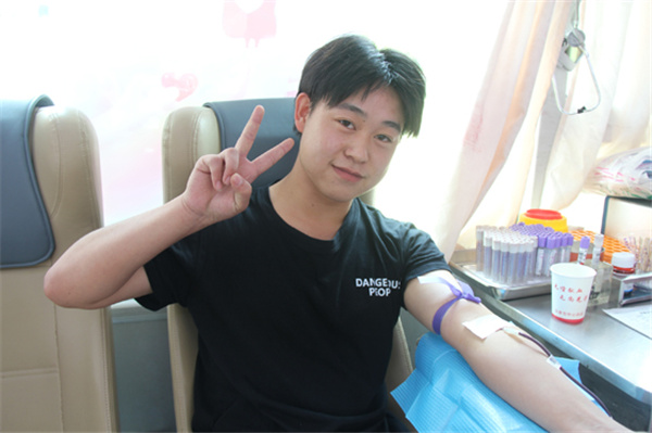 金濤濤是汽修專業(yè)四年級(jí)的學(xué)生,當(dāng)天他第一個(gè)走上獻(xiàn)血車,已經(jīng)第四次獻(xiàn)血的他顯得非常輕松。他告訴我們,自己初次獻(xiàn)血是十八歲,之后每年時(shí)間到了都主動(dòng)來獻(xiàn)血,上次他還拉上了爸媽,一家三口一起獻(xiàn)了血。金濤濤覺得獻(xiàn)血特別有意義,對(duì)自己的身體有好處,還能救人,每次收到血站發(fā)來的用血短信心里都超級(jí)自豪,就想多喊幾個(gè)人一起來,他說今后一定爭(zhēng)取把全宿舍的人都動(dòng)員起來,多獻(xiàn)血多出力多助人!