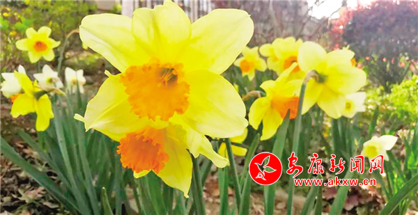而洋水仙發(fā)芽比郁金香更早,一些調(diào)皮的小朋友甚至在這幾天就已經(jīng)冒出頭來窺探世界了。當它長到兩寸高時,你就能看見它那比葉片更厚而顏色偏淺的花蕾,它的花蕾和葉片在接下來的兩個月幾乎是同時長高,最后,豎直的花蕾漸漸彎曲成與葉片成直角,花兒就會在未來的幾天綻放。