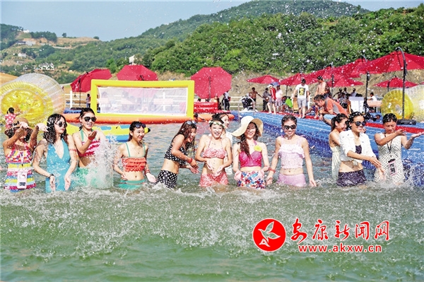 瀛湖的初夏,萬(wàn)千變化。清晨,山和水還在夢(mèng)中酣睡,一輪紅日從東面湖的盡頭沐浴而出,爬上山頭,霞光染紅了湖水,染紅了天空,湖面顯得更加清幽。傍晚,落日熔金,給群山鍍了一層金邊。此時(shí),群鳥(niǎo)歸隱,群魚(yú)入眠。江風(fēng)攪動(dòng)湖水,湖面波光瀲滟,明麗動(dòng)人。晚歸的漁民搖著一葉扁舟在寂靜的湖面上飄蕩,成為畫(huà)中最美的風(fēng)景。習(xí)習(xí)涼風(fēng)也吹散了白日的暑熱,舒適愜意,是休閑避暑的好去處。若遇雨天,天地間扯起絲絲銀線,水天一色,如煙如霧,籠罩在瀛湖上空。那若有若無(wú)輕煙一樣的雨霧輕盈地飄蕩在湖面上、群山間,翠屏山莊上的亭臺(tái)水榭、湖心碧螺島上的螺峰塔,全都沐浴在水蒙蒙的輕紗中,如夢(mèng)似幻。“西塞山前白鷺飛,桃花流水鱖魚(yú)肥。青箬笠,綠蓑衣,斜風(fēng)細(xì)雨不須歸?!贝藭r(shí),湖里的魚(yú)兒成群結(jié)隊(duì)地游出水面透氣,正是釣魚(yú)的最佳時(shí)機(jī),湖邊不少垂釣愛(ài)好者正興致勃勃地冒雨釣魚(yú),完全不顧雨已打濕了衣服。湖中,一葉葉漁舟和游船在雨中漫游,幽幽絲竹之聲從游船中飄出,像游走在煙雨迷蒙的江南水鄉(xiāng)。