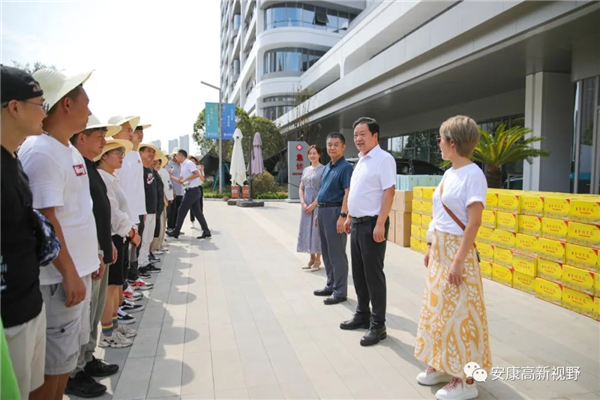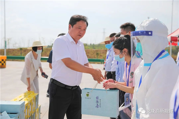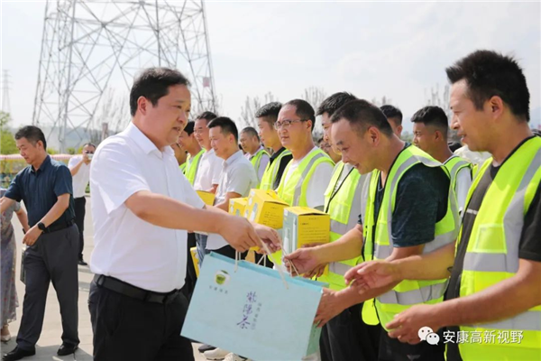 7月14日,市委常委、安康高新區(qū)黨工委書記羅武俠帶領(lǐng)相關(guān)部門負(fù)責(zé)人看望慰問防疫、水電、環(huán)衛(wèi)等一線工作人員,為他們送去防暑降溫物品,向他們?yōu)槌鞘邪l(fā)展和保障民生作出的辛勤貢獻(xiàn)給予高度肯定、表示衷心感謝。