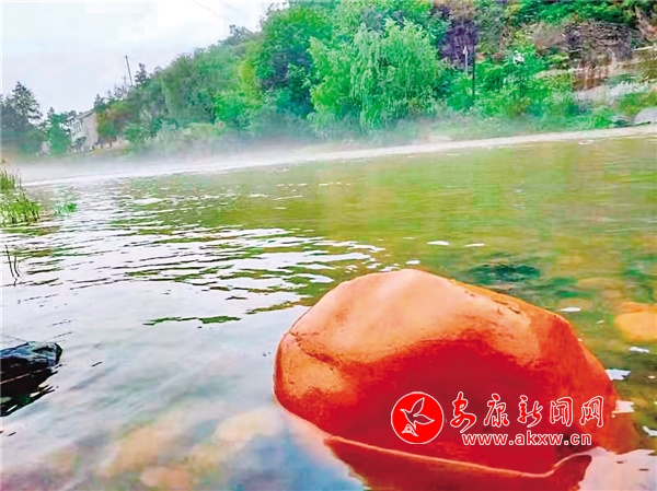 富家河以盛產(chǎn)黃蠟石而聞名,溯溪而上,積水成潭,故有了黃石灘之說。辛丑仲夏,駐村工作的使然,便和黃石灘有了初次接觸。多雨的季節(jié),多霧的節(jié)奏,雨止霧起,氤氳云煙,漲水淹沒了過水橋,半拱在潺潺溪水中只剩下一星點(diǎn)月牙兒,微風(fēng)吹來,蕩起一串串漣漪,擴(kuò)散到岸邊,紫信吐芳、綠竹搖曳、蝴蝶飛舞、蟬羽嘀鳴,散落在泥土中,黃蠟石顯得特別突兀……水域絕色,宛如仙境一般。
