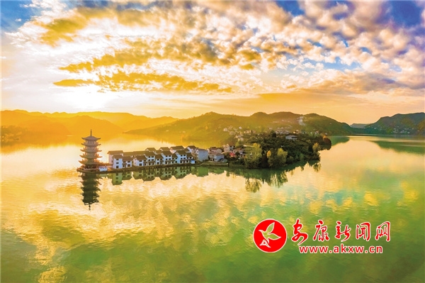 在瀛湖,冬日里的暖陽(yáng)往往午后才露出羞澀的笑臉。聽說(shuō)清泉老碼頭新打造了一座古香古色的小鎮(zhèn),與四周的群山和這里的大湖面渾然一體,美麗壯觀。11月下旬的一個(gè)下午,待云霧慢慢散開,我和紀(jì)平、世軍驅(qū)車來(lái)到清泉老碼頭。過(guò)去,這個(gè)碼頭是跨漢江通往玉嵐的必經(jīng)之地,也是嵐河與漢江的交匯處。火石巖電站大壩蓄水后,這里呈現(xiàn)出瀛湖最開闊的湖面,螺峰島、翠屏島、玉興島、五龍山等形成了四面環(huán)水的島嶼,清泉、玉嵐、橋興、關(guān)埡子、紅巖堡、南溪溝、任家灣等地縱橫交錯(cuò),形成了諸多形態(tài)各異的半島。水位升至最高時(shí),“腰帶”消失,山與水渾然一體,與綿延的山勢(shì)溫柔相依。此時(shí)山頭已是草木蕭疏,只剩下光禿禿的樹枝了,而瀛湖兩岸卻秋意正濃,山坡上的紅黃綠像是被打碎了的調(diào)色盤,洋洋灑灑,帶著幾分溫潤(rùn)嵌入山坡、映入湖中,在藍(lán)天白云的映襯下,宛如一個(gè)童話世界。忽然,一艘游船駛過(guò),五彩斑斕的倒影頃刻被攪拌成彩色綢緞,任其在湖中翻滾飄蕩。夕陽(yáng)劃過(guò)山頭的那一刻,紅霞漫天,湖面被染成橘色之后,一片寂靜。只有此時(shí),山之沉穩(wěn)端莊和水之嫵媚溫柔交融一體,呈現(xiàn)出無(wú)與倫比的美。我想,這不正是我想要的那幅極具詩(shī)情畫意的場(chǎng)景嗎?有感: