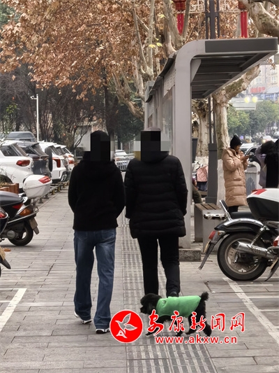 1月14日,在金州國際城門口,有市民遛狗不牽繩。?