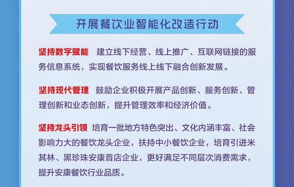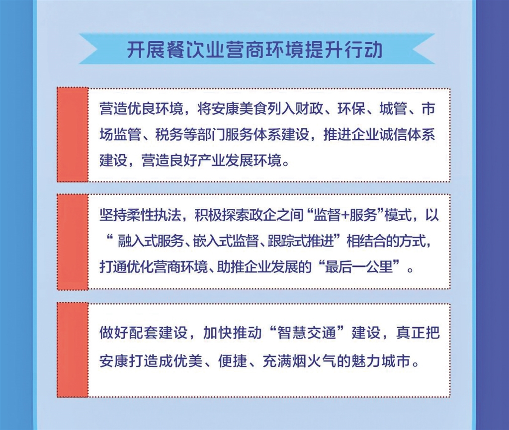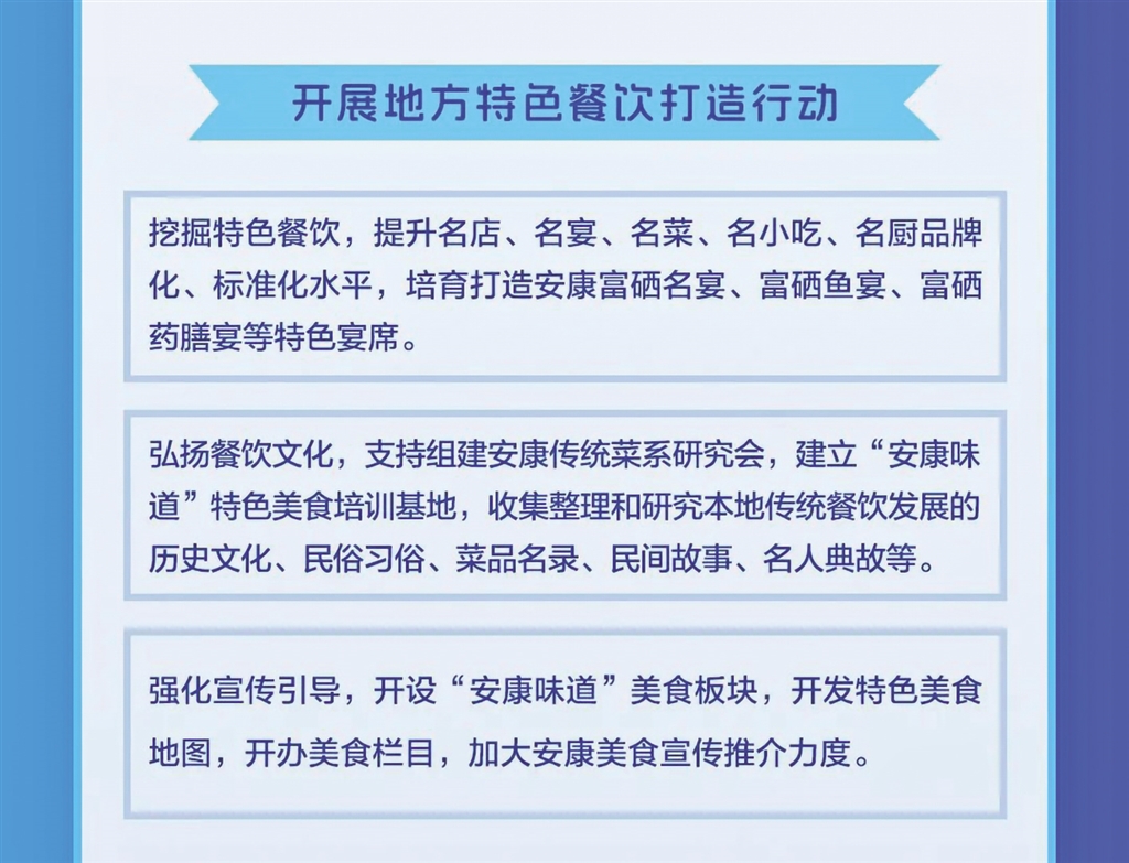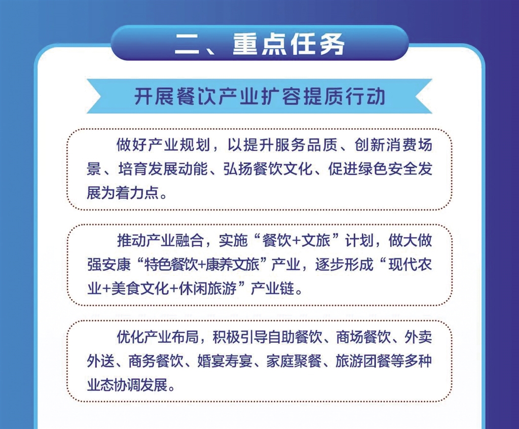 日前,安康市商務(wù)局等11部門聯(lián)合發(fā)布《關(guān)于進一步推進全市餐飲業(yè)高質(zhì)量發(fā)展的實施意見》,本期帶您一圖讀懂其重點任務(wù)。