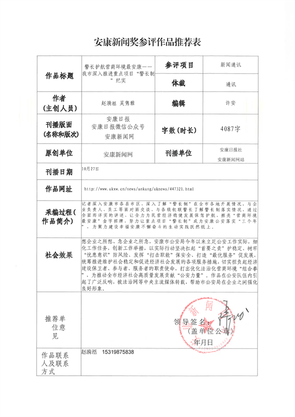 經(jīng)過(guò)編委會(huì)推薦、社黨委研究決定,擬推薦以下13件新聞作品參評(píng)2023年度“安康新聞獎(jiǎng)”。公示時(shí)間從2024年3月25日至2024年3月29日,公示期為5個(gè)工作日。如有不同意見,請(qǐng)向安康日?qǐng)?bào)社機(jī)關(guān)紀(jì)委、新聞管理部反映。