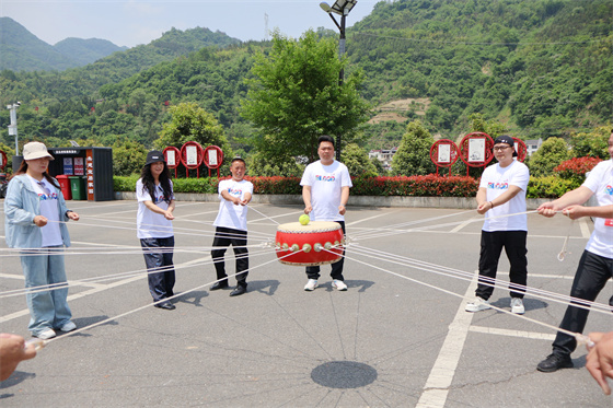 隨后,一眾獻(xiàn)血者乘著大巴迎著初夏的清風(fēng)來到了平利縣蔣家坪村。參觀結(jié)束后,獻(xiàn)血者們?cè)趯I(yè)教練的帶領(lǐng)下開展了素質(zhì)拓展訓(xùn)練,大家分別組隊(duì),繪制了精美的團(tuán)隊(duì)旗幟,喊出了響亮的團(tuán)隊(duì)口號(hào)……指壓板接力、擊鼓顛球、獨(dú)木橋、一圈到底、一個(gè)個(gè)趣味游戲讓場(chǎng)上隊(duì)員激情滿滿、歡樂無比,大家在一輪又一輪的比拼中體會(huì)到了對(duì)抗的激烈,也感受到了團(tuán)結(jié)的情誼,更展現(xiàn)了成分血固定獻(xiàn)血者們“勇往直前、持之以恒、永不服輸”的堅(jiān)韌精神,正如大家多年來對(duì)安康無償獻(xiàn)血公益事業(yè)的堅(jiān)守與支持。
