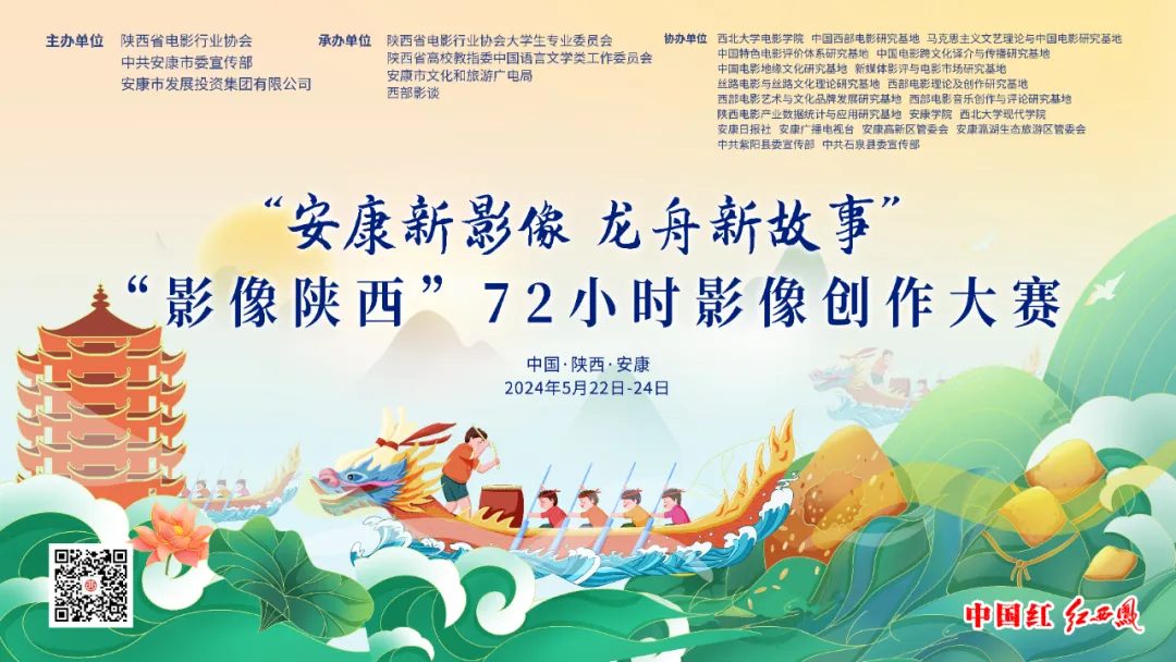 “安康新影像·龍舟新故事”“影像陜西”72小時影像創(chuàng)作大賽由陜西省電影行業(yè)協(xié)會、中共安康市委宣傳部、安康市發(fā)展投資集團(tuán)有限公司主辦,陜西省電影行業(yè)協(xié)會大學(xué)生專業(yè)委員會、陜西省高校教指委中國語言文學(xué)類工作委員會、安康市文化和旅游廣電局、西部影談承辦。通過主題限時拍攝、分享交流、展映評獎等活動,匯集新興影視創(chuàng)作力量,以安康為創(chuàng)作空間,不限制創(chuàng)作題材風(fēng)格,鼓勵青年影人以年輕、多元的視角在72小時內(nèi)進(jìn)行短片創(chuàng)作,從節(jié)慶活動、自然風(fēng)光、現(xiàn)代都市、人文生活、美食文化等角度,為安康文旅、龍舟文化提供影像表達(dá)的另一種可能。