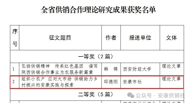 按:本文系安康市供銷合作社黨組書記、理事會主任邱德剛署名理論文章,立足供銷助力鄉(xiāng)村振興的安康實踐與探索,深入闡述了“組織小農(nóng)戶應對大市場”的內(nèi)在邏輯,把群眾“組織起來”投身經(jīng)濟合作的實踐方法,在助力鄉(xiāng)村振興、推進共同富裕實踐中探索出一條可復制可推廣的典型經(jīng)驗,其理論內(nèi)涵、實踐邏輯為在推進鄉(xiāng)村振興中更好發(fā)揮供銷社的獨特優(yōu)勢和重要作用提供了有益參考,具有較強的指導意義。該文在中華全國供銷總社和陜西省供銷總社“薪火相傳七十載,砥礪奮進新時代”主題征文中獲評“全省供銷合作理論研究成果一等獎”。