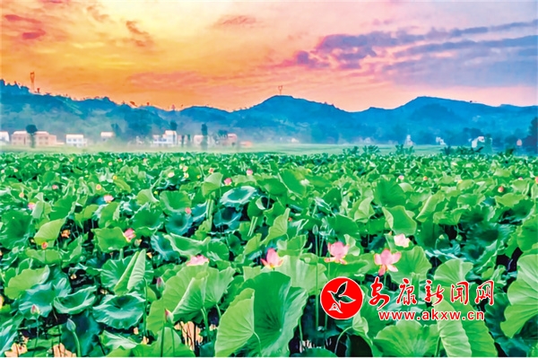 “嗚——”一聲汽笛長(zhǎng)鳴,我們?nèi)齻€(gè)不約而同地扭頭望去,一輛“清風(fēng)號(hào)”紅色小火車(chē)載著滿(mǎn)滿(mǎn)一車(chē)游人在荷塘間穿梭,車(chē)上的人一臉幸福自豪,盡享漫游的快樂(lè)。江南的荷塘里是采蓮的畫(huà)船,這里是奔馳的火車(chē),倒也有趣。我的腦海里閃現(xiàn)一個(gè)念頭:既然有陜南,何必下江南??