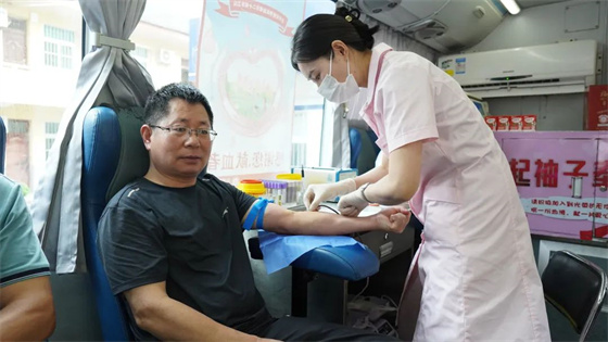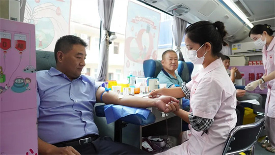 活動(dòng)現(xiàn)場(chǎng),無償獻(xiàn)血志愿者在醫(yī)務(wù)人員的引導(dǎo)下有序進(jìn)行登記、體檢、測(cè)血壓。紅色的血液從血管中抽出,緩緩流進(jìn)輸血袋,一袋袋鮮紅的血液和一張張光榮的獻(xiàn)血證,傳遞著愛心和希望。