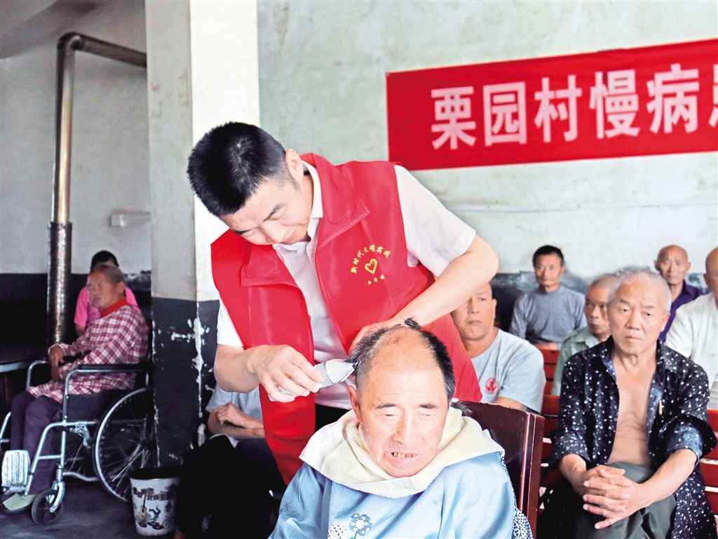為弘揚中華民族“孝老、敬老、愛老”傳統(tǒng)美德,8月7日,白河縣西營鎮(zhèn)機關黨支部組織黨員來到西營鎮(zhèn)區(qū)域敬老院開展“弘揚孝義善舉 倡導文明鄉(xiāng)風”志愿服務活動?;顒又校驹刚邆?yōu)槔先藗兲峁┝烁啐g補貼認證、修剪指甲、打掃衛(wèi)生等志愿服務。(劉焱 胡曉華 攝)