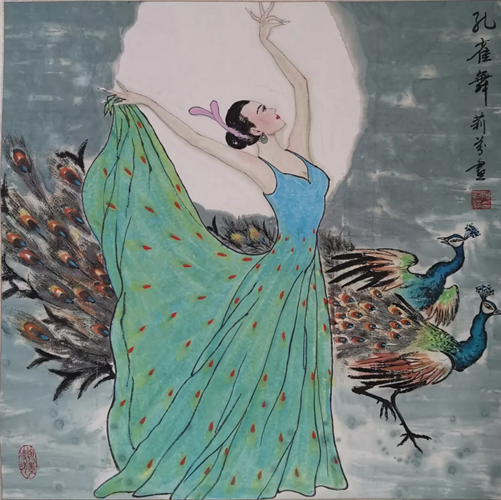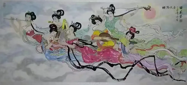 解大姐是陜北人,性格開朗、直率,說話中間或帶出一些濃重的陜北口音。雖說她主業(yè)從于政界,但她微笑的背后卻潛藏著不可掩飾的藝術(shù)天賦,揮發(fā)著令人奪目的藝術(shù)才情。繁雜的政務工作之余,她創(chuàng)作不輟,堅持不懈,居然在多個藝術(shù)門類收獲頗豐,好評連連。寫小說,她寫出幾十萬字的長篇出版發(fā)行;寫劇本,竟拍成了電影予以公映;學國畫,亦讓藝術(shù)界的大咖贊口不絕。我雖不才,空有浮名,但深耕藝界多年,對于其中的好賴還能分出一二。我感到,一個人的人品和藝品基本一致,解大姐的藝術(shù),是扎根于她熟悉的陜北大地的藝術(shù),是生長在山峁峁上經(jīng)歷風霜雨雪的藝術(shù),就像那陜北倔強的疙瘩柳,散發(fā)著對土地對生活的親近和熱情,對人生價值實現(xiàn)的不屈和追求??吹剿膰嬓伦鳎嘘儽奔艏埖让耖g藝術(shù)的滋養(yǎng)和影響,真切而樸實。她的飛天人物系列,泥古而不落窠臼,使我想到疙瘩柳條隨風擺動的婀娜風姿,溫溫潤潤,令人遐思和向往;她的花鳥畫作,使我想到陜北山野一片蒼茫之間,一朵兩朵盛開的山丹丹花,嬌艷得令人不忍觸手;她的山水畫作,又猶如陜北山原上嫩黃的棗花,洋溢著撲面而來的質(zhì)樸、清新和率真之氣。
