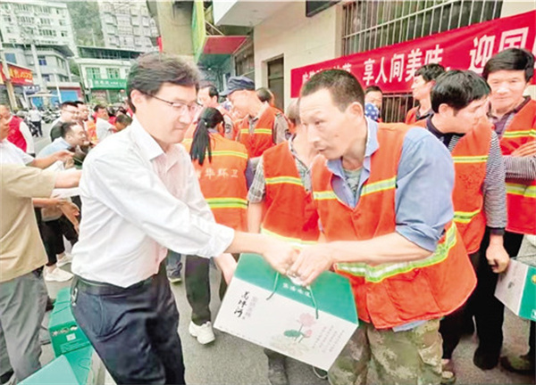 在國(guó)慶佳節(jié)前夕,蒿坪鎮(zhèn)黨委政府精心組織了一場(chǎng)別開生面的“吃豬蹄子燉藕,享人間美味,迎國(guó)慶佳節(jié),向環(huán)保衛(wèi)士致敬”主題慰問(wèn)活動(dòng)。 劉姝含 攝