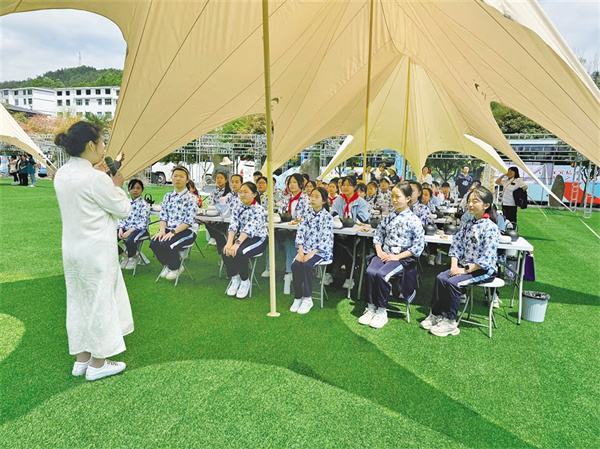 紫陽(yáng)小學(xué)研學(xué)活動(dòng)聆聽茶藝課程。劉姝含 攝