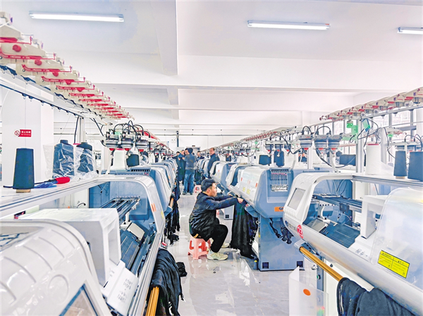 工人正在吉創(chuàng)暉羊毛衫工廠調(diào)試機(jī)器