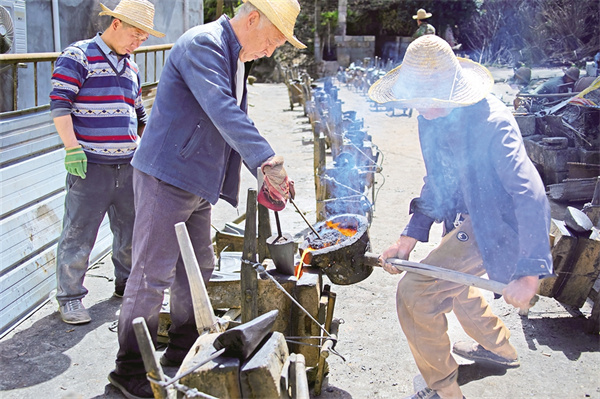 宋祖新的叔祖父是當(dāng)年鏵廠的“掌勺”師傅之一,在一次次觀看大人們操作中,他也學(xué)會了從制模到熔鐵澆鑄一整套鑄鏵技術(shù)。隨著農(nóng)業(yè)科技的發(fā)展,傳統(tǒng)的鐵鏵制作工藝逐漸被機械化生產(chǎn)所取代,但在陜南一些山區(qū)坡地仍延續(xù)著犁鏵耕作方式?!扒靶┠辏鄶?shù)人都選擇外出務(wù)工,種地的少,好多年沒有開爐鑄鏵了,很多年輕人都沒有親自體驗過制作過程,聽說我們這兒又開始鑄鏵,連縣城的人都趕來看稀奇!”宋祖新說。