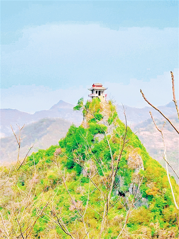 峭壁之上,是一座正在修建的觀景臺,亭子雖不大,但是飛檐翹角,白墻黛瓦,矗立在山頂,也顯得頗為偉岸。站在觀景臺上俯瞰山谷,任山風拂面,頓覺神清氣爽,油然而生一種“一覽眾山小”的自豪。