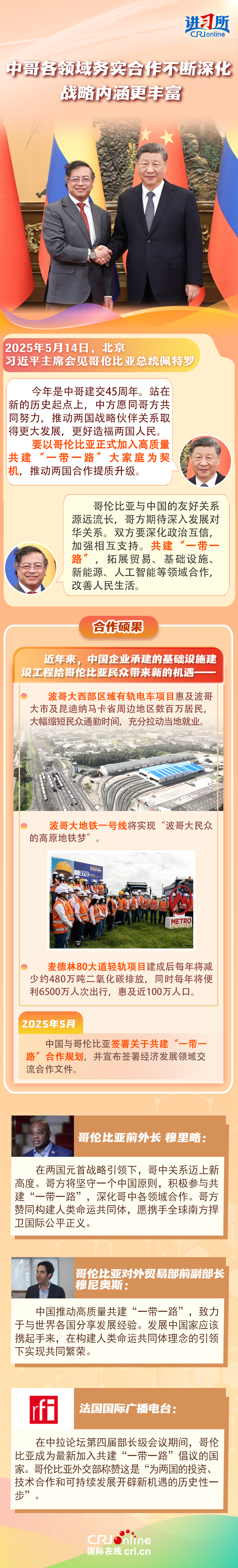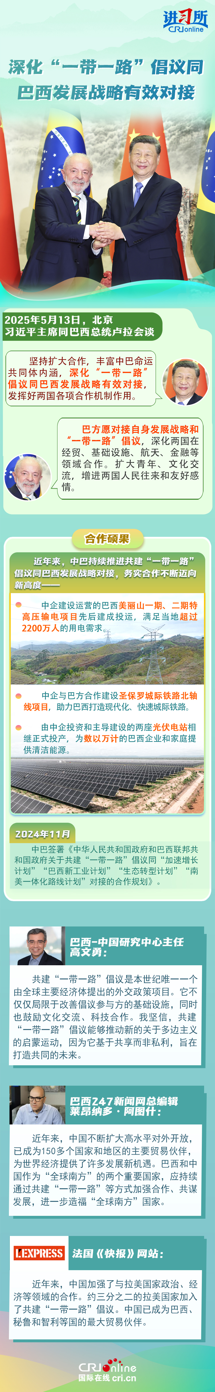 習近平主席在這三場雙邊外事活動中,均提到了共建“一帶一路”倡議:“深化‘一帶一路’倡議同巴西發(fā)展戰(zhàn)略有效對接”“要以哥倫比亞正式加入高質(zhì)量共建‘一帶一路’大家庭為契機,推動兩國合作提質(zhì)升級”“雙方要落實好共建‘一帶一路’合作規(guī)劃”……10多年來,在習近平主席親自擘畫和推動下,共建“一帶一路”從中國倡議走向國際實踐,取得了實打?qū)?、沉甸甸的成就?/p>