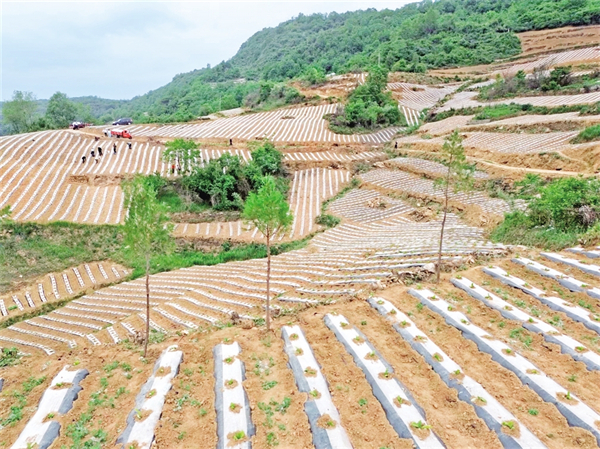 離開錢河梁,走進(jìn)海棠寺村的梯田里,種煙大戶吳義剛正迎著晨曦帶上20余名村民搶墑移栽。23年的種煙歲月在他臉上刻下溝壑,也沉淀出“致富良經(jīng)”。他瞇著眼睛笑著說:“去年新種的80畝煙田毛收入24萬,今年?duì)幦≡俣噘嶞c(diǎn),給孩子換臺(tái)好車?!碑?dāng)目光撫過嫩綠的煙苗,手掌摩擦著滴灌管道,吳義剛驀然間變得激動(dòng):“雖然今春干旱嚴(yán)重,但是政府配發(fā)的抗旱設(shè)備讓移栽成活率大大提升,我們的心血總算沒有白費(fèi)。”村支部書記劉登平頂著烈日算起產(chǎn)業(yè)增收賬:“今年450畝煙田已基本栽完,11個(gè)大戶帶著小戶干,戶均增收能破萬元?!?/p>