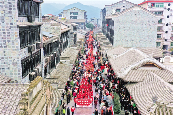 一縷微風(fēng)穿過(guò),黃昏的老街各種顏色交織碰撞,給人無(wú)限遐想。街道兩旁,店鋪一家挨著一家,幾家店外排著長(zhǎng)隊(duì),生意火爆。漢服、旗袍走秀、火獅子、舞龍、漢調(diào)二黃、花鼓戲入眼入耳?;秀遍g,昔日的場(chǎng)景猶如一幅畫卷徐徐展開。