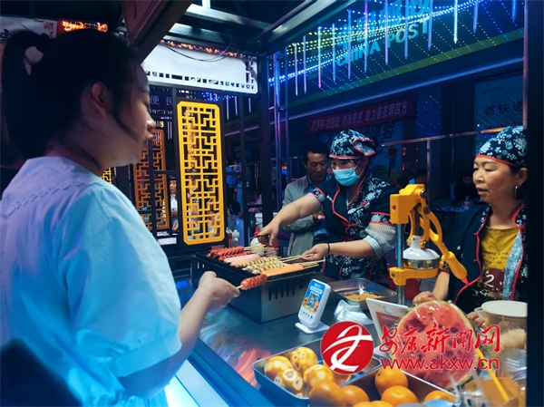 6月15日晚上,夜色漸深。寧陜縣濱河公園的小吃街變得熱鬧非凡。30家攤位整齊有序地排列開來,洋芋糍粑軟糯香甜,玉米鍋巴酥脆可口,麻辣豆腐干鮮香四溢,特色美食的香氣在空氣中彌漫開來,市民們絡繹不絕、穿梭其間。