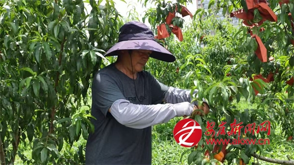 同樣迎來收獲的還有城關(guān)鎮(zhèn)的黃桃,在城關(guān)鎮(zhèn)龍嶺村的黃桃種植基地,連片的桃樹郁郁蔥蔥,金燦燦的黃桃壓彎了枝條,空氣中彌漫著誘人的桃香。基地負(fù)責(zé)人劉宏正忙著采摘,臉上洋溢著燦爛的笑容,他一邊采摘一邊介紹道:“我們這個(gè)桃園有金鳳黃桃、黃金黃桃、秋彤桃和冬桃四個(gè)品種,一共有9畝多,從6月中旬到10月左右,陸續(xù)都有成熟的桃子。”