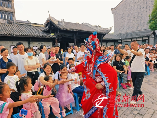 變臉表演人員與觀眾互動(dòng)