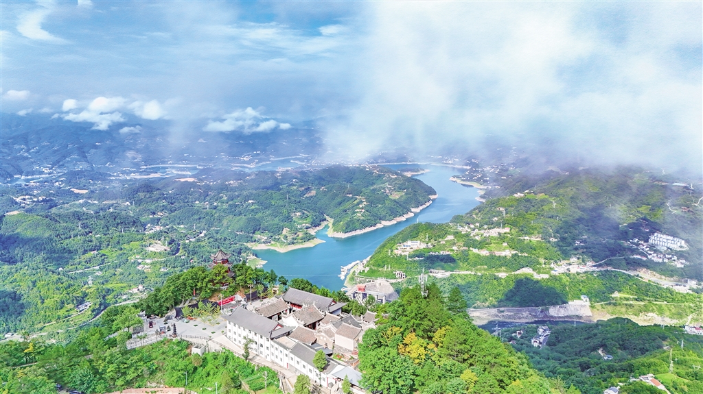 8月14日清晨,站在瀛湖風(fēng)景區(qū)內(nèi)遠眺,遠山、村莊相互映襯,風(fēng)景如畫。趙華斌 攝