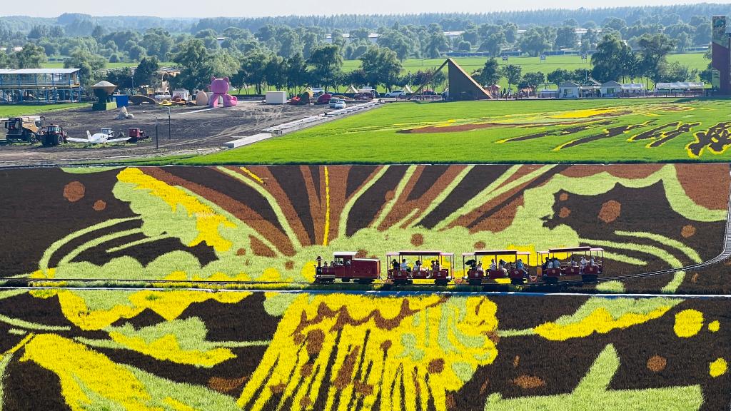在北大荒集團閆家崗農(nóng)場的“藝術(shù)稻田”里,6幅稻田畫在165畝稻田中徐徐展開——冰雪畫卷盡顯百年冰城魅力,四季生態(tài)畫卷演繹著四季浪漫;萌寵卡皮巴拉,傳遞出平靜與治愈的力量;后羿射日、女媧補天、神筆馬良這些經(jīng)典神話在稻田中煥發(fā)新生,與多彩的稻浪共同演繹著中華文明的永恒魅力。100多公里外,北大荒集團四方山農(nóng)場的玉米田,青紗帳漸染金黃,工作人員張昊正遙控無人機,巡航監(jiān)測作物成熟度,科技與傳統(tǒng)在此刻共舞。