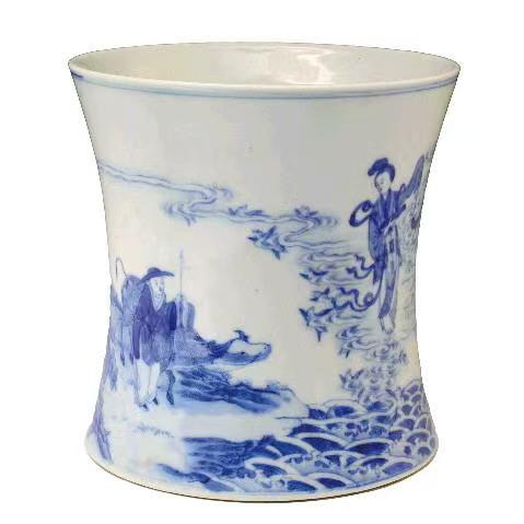 山東博物館收藏的清光緒青花七夕卷筒,也描繪了牛郎織女在天河上即將相會的情景。卷筒圖案中,祥云繚繞、喜鵲飛舞,鵲橋很快就會搭成。一年未見,牛郎拱手準備,對即將到來的見面迫不及待;織女衣袂飄飄,含情脈脈地望著日夜思念的牛郎。畫中人物清麗灑脫、典雅高貴,器物主題鮮明、藝術(shù)性較高,真可謂秦觀筆下“金風(fēng)玉露一相逢,便勝卻人間無數(shù)”的生動注解。