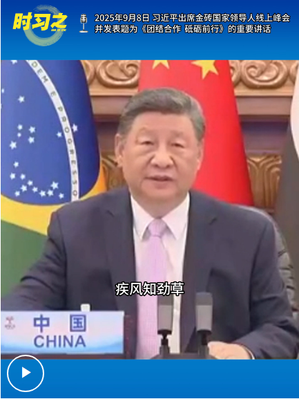 2025年9月8日晚,國家主席習近平出席金磚國家領(lǐng)導(dǎo)人線上峰會,并發(fā)表題為《團結(jié)合作 砥礪前行》的重要講話。