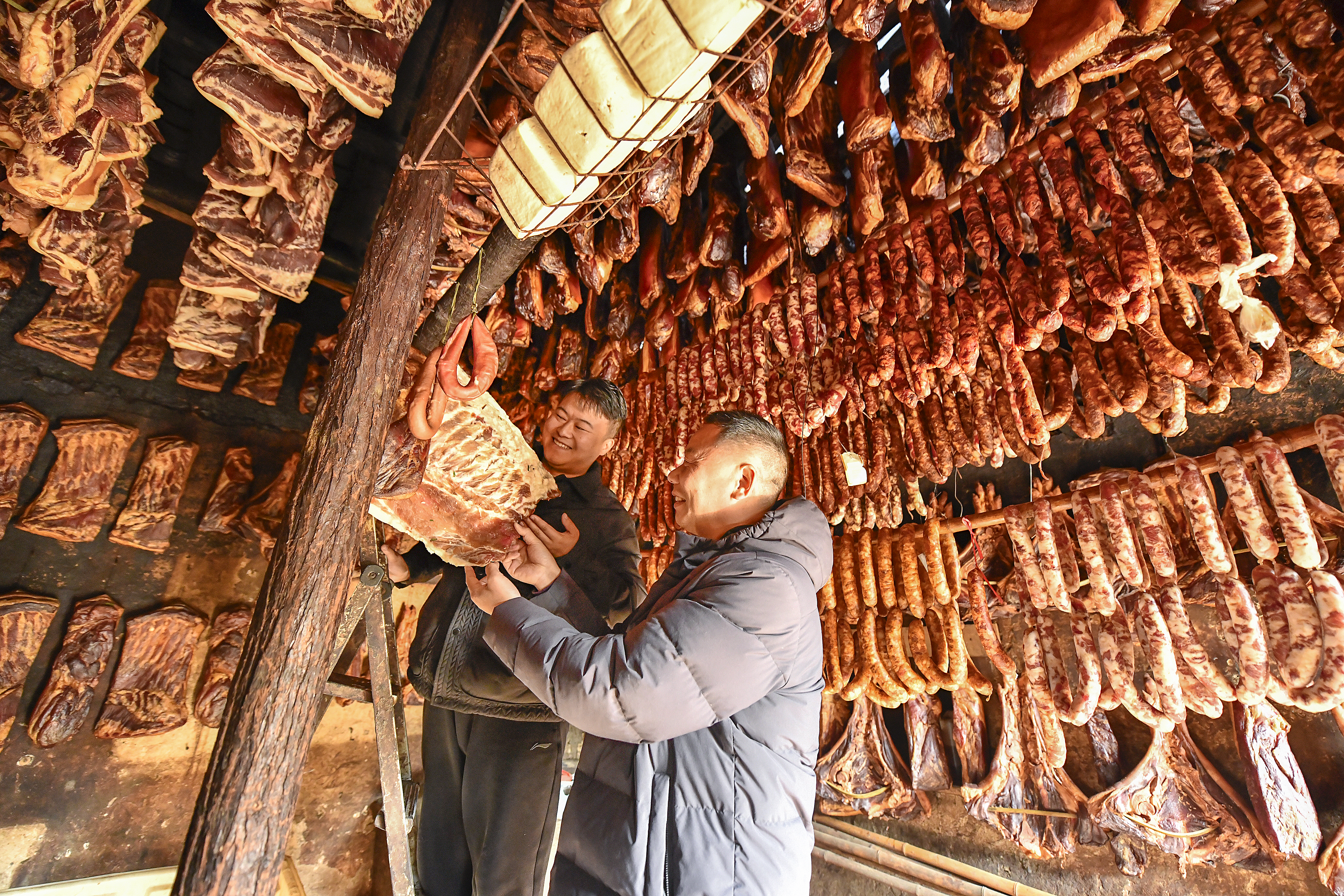 12月29日,走進(jìn)石泉縣城關(guān)鎮(zhèn)珍珠河村王全勇家,臘肉、香腸整齊懸掛,紅亮油潤。近年來,珍珠河村以集體經(jīng)濟(jì)合作社牽頭,發(fā)動(dòng)返鄉(xiāng)能人,在安全前提下,以古法烘制臘肉、香腸等特色“年貨”,年均出產(chǎn)臘肉6萬余斤,持續(xù)做強(qiáng)本土“臘味”經(jīng)濟(jì),多渠道助農(nóng)增收。