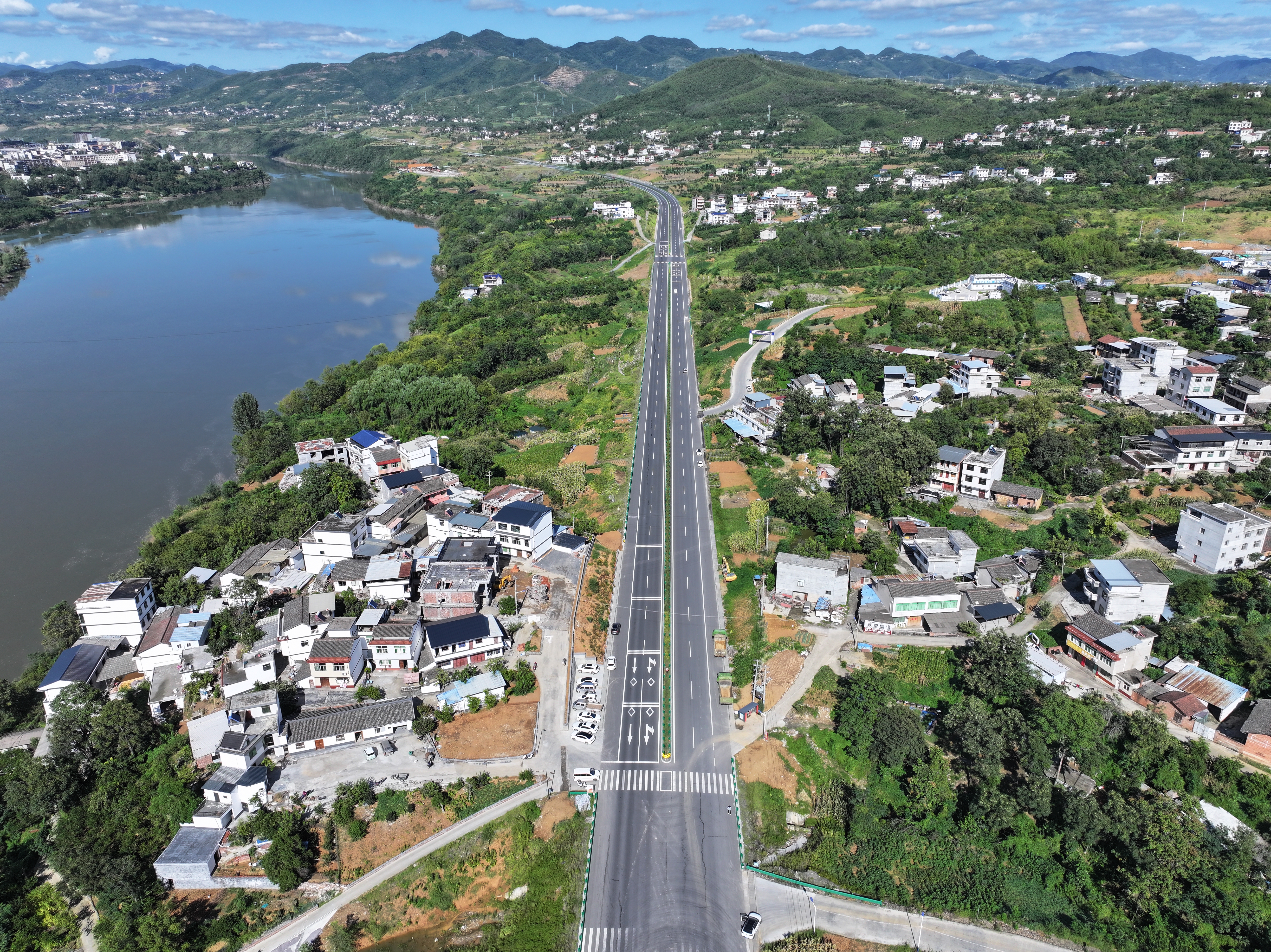 在漢濱區(qū)張灘鎮(zhèn)211國道“千萬工程”示范線上,張石大道貫通南北,成為串起鄉(xiāng)村風(fēng)景的美麗廊道。 李靖 攝