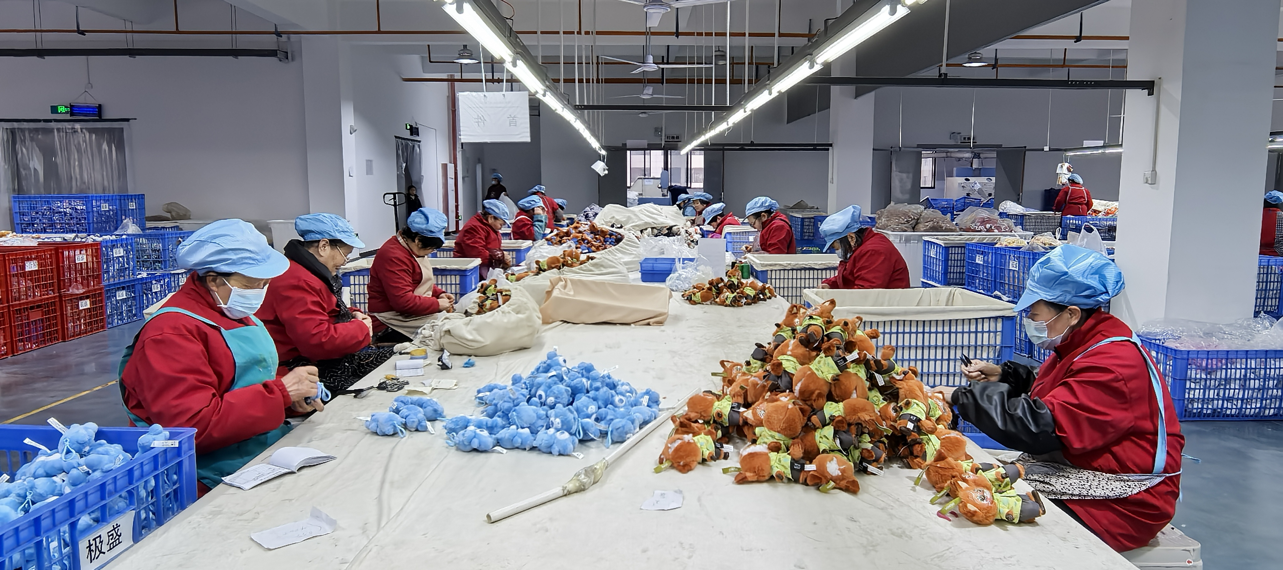 截至2025年底,全區(qū)正常生產(chǎn)經(jīng)營的毛絨玩具文創(chuàng)企業(yè)達77家,其中總部型企業(yè)10家,年產(chǎn)值突破18億元,已構建起從研發(fā)設計到生產(chǎn)制造、品牌營銷于一體的產(chǎn)業(yè)體系。建成毛絨文創(chuàng)標準化廠房25萬平方米,配套建設研發(fā)中心及產(chǎn)品展示設施4萬平方米,累計帶動就業(yè)1.4萬人,年發(fā)放工資超5億元,成為促進群眾穩(wěn)定增收、鞏固拓展脫貧攻堅成果的重要支撐。