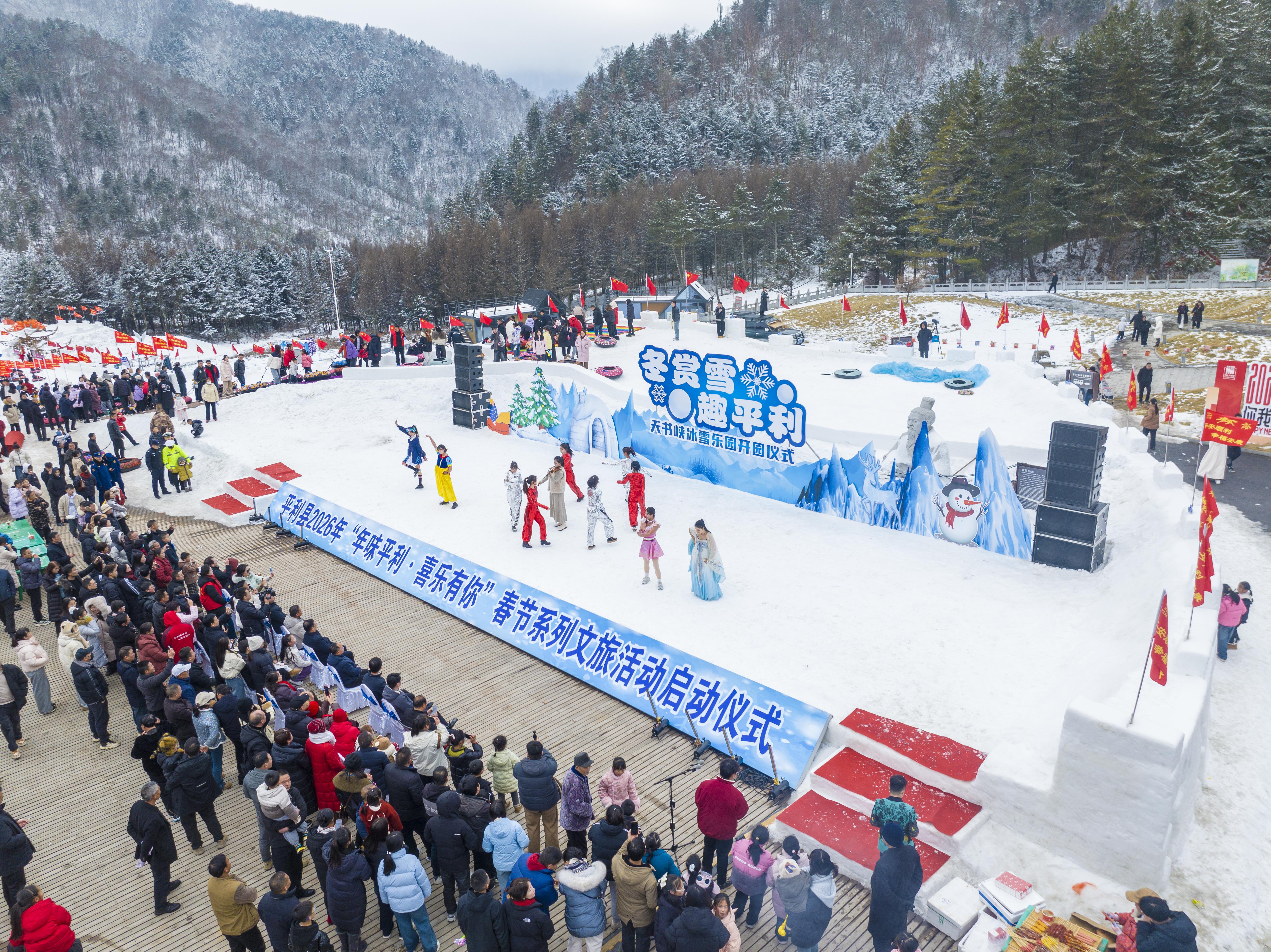 2月1日,“冬賞雪·趣平利”天書峽冰雪樂園暨2026年“年味平利·喜樂有你”春節(jié)系列文旅活動啟動儀式在八仙鎮(zhèn)天書峽景區(qū)舉辦。開園當(dāng)日,景區(qū)同步開放了冰雪游樂區(qū)、美食體驗區(qū)與農(nóng)特產(chǎn)品展銷區(qū)。在農(nóng)特產(chǎn)品展銷區(qū)集中展示了高山蜂蜜、手工芝麻糖、八仙臘肉等縣域優(yōu)質(zhì)農(nóng)產(chǎn)品,讓游客在游玩的同時,還能把“平利味道”帶回家。