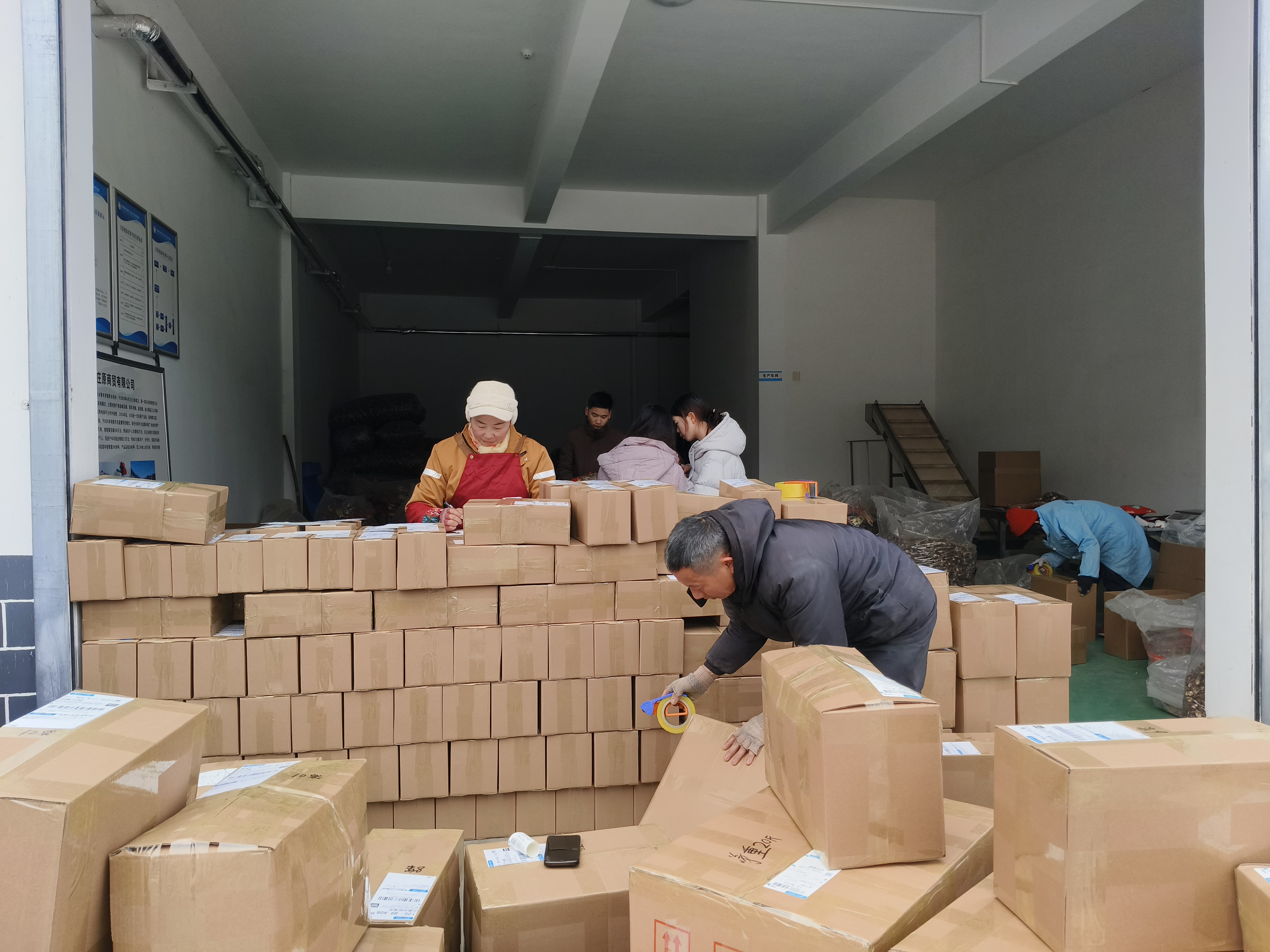 春節(jié)前夕,寧陜縣江口回族鎮(zhèn)秦府莊原商貿(mào)有限公司內(nèi)一片繁忙,工人們忙著打包、發(fā)貨。近期,寧陜山珍線上銷量持續(xù)走高,日均發(fā)貨約700單。(劉長兵 攝