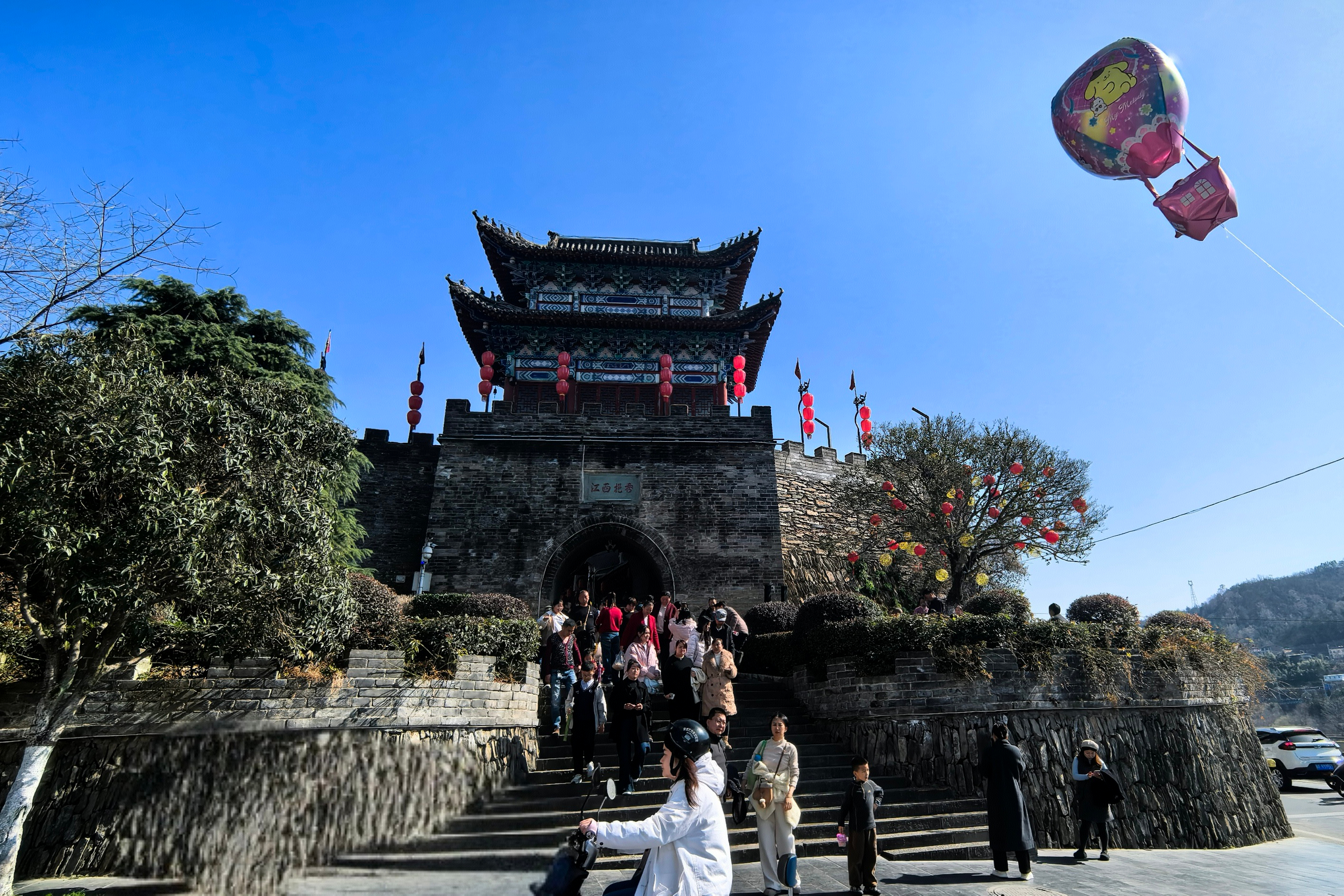石泉秦巴老街的西門(mén)城樓下熙熙攘攘。 孟少猛 攝