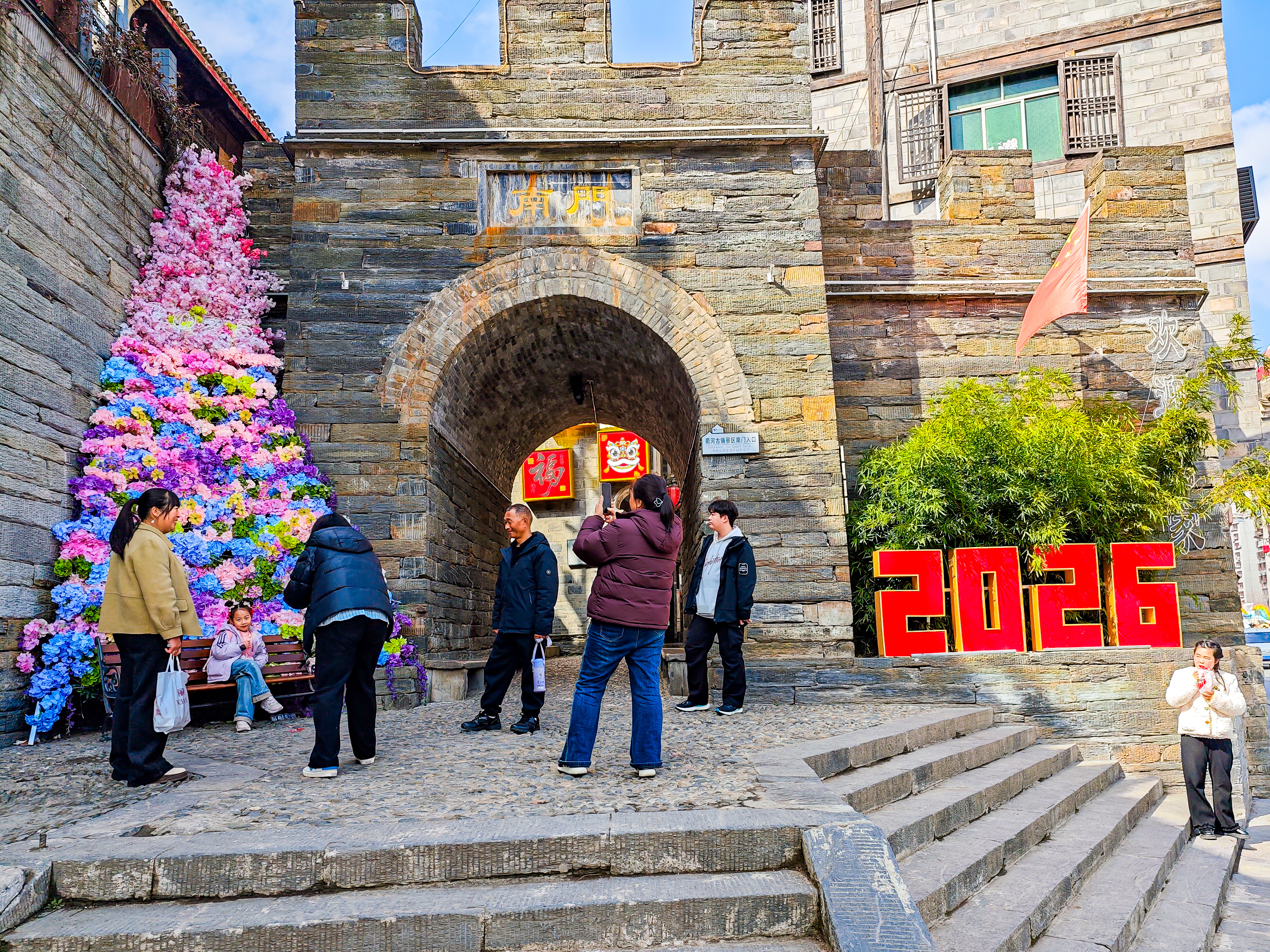 2月24日,旬陽(yáng)市蜀河古鎮(zhèn)年味濃郁。青石板路上“2026”新春裝置與古建筑相映成趣,游客往來其間、拍照打卡,感受古鎮(zhèn)特有的節(jié)日氛圍。潘文進(jìn) 攝