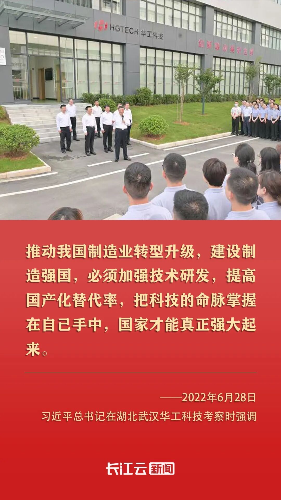 2022年6月,習(xí)近平總書記來到湖北武漢考察,第一站就來到光谷,來到華工科技。他指出,湖北武漢東湖新技術(shù)開發(fā)區(qū)在光電子信息產(chǎn)業(yè)領(lǐng)域獨樹一幟。要加強技術(shù)研發(fā)攻關(guān),掌握更多具有自主知識產(chǎn)權(quán)的核心技術(shù),不斷延伸創(chuàng)新鏈、完善產(chǎn)業(yè)鏈,為推動我國光電子信息產(chǎn)業(yè)加快發(fā)展作出更大貢獻。