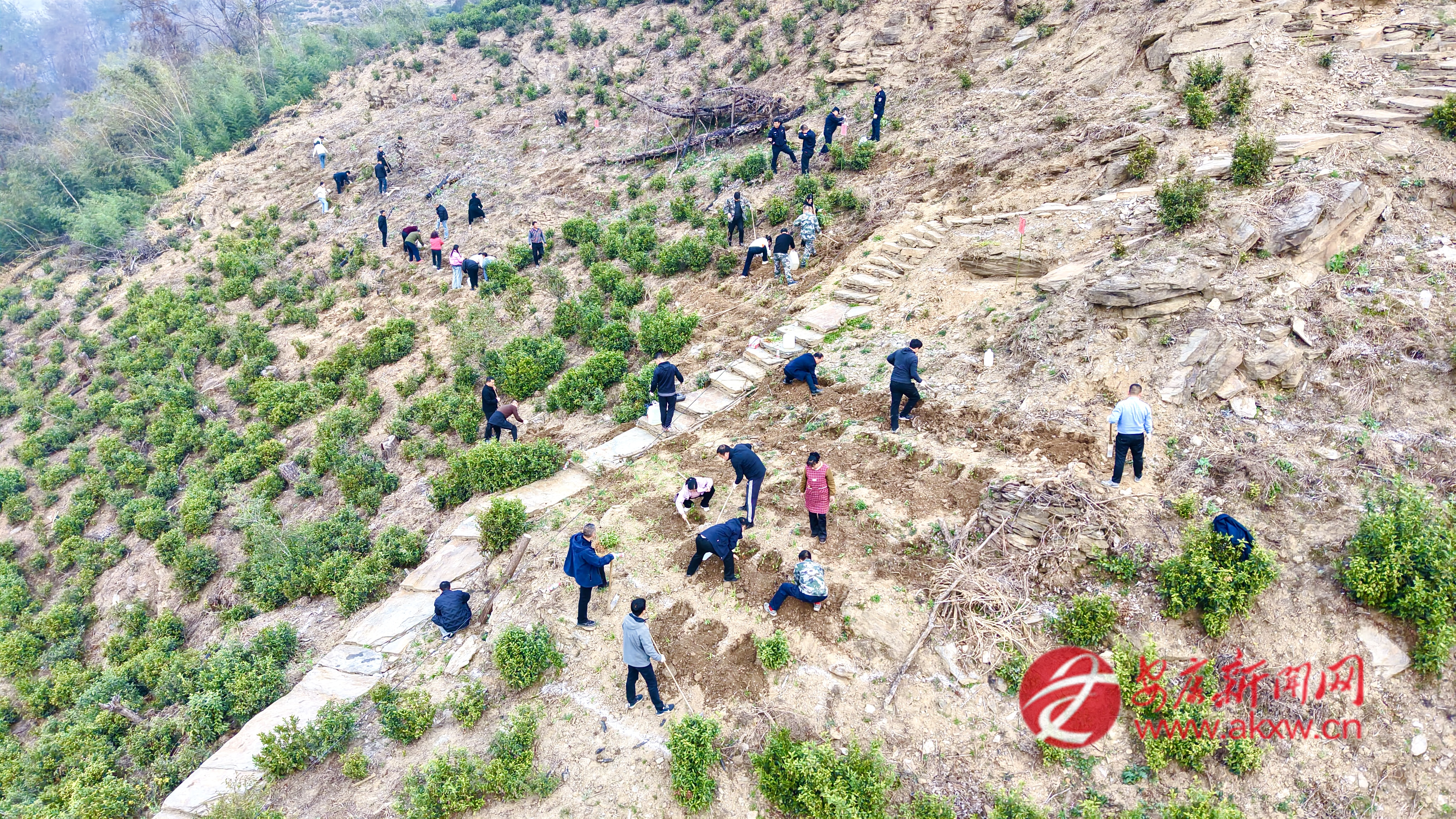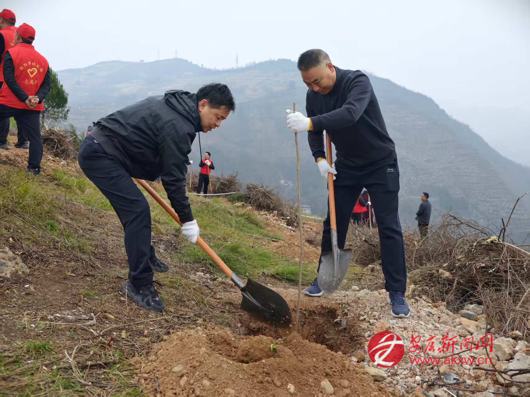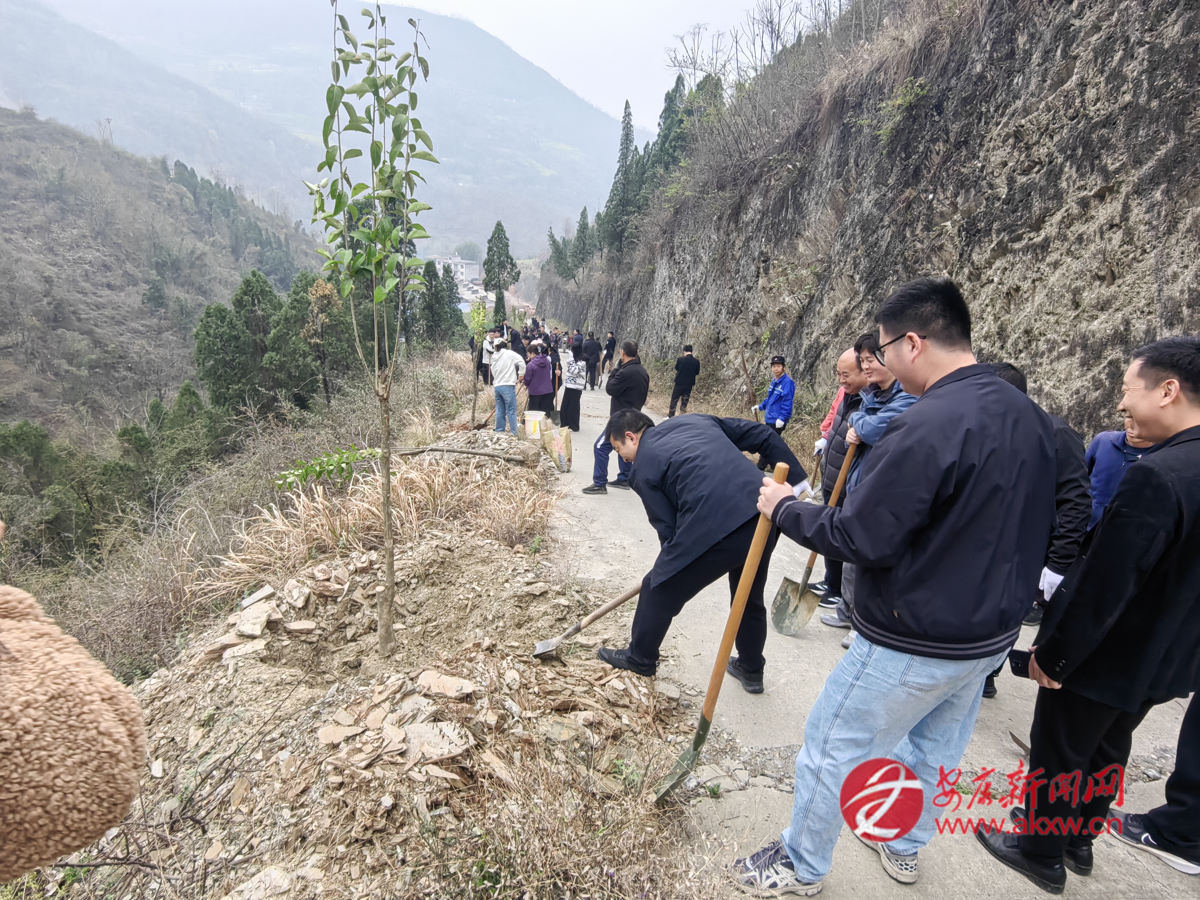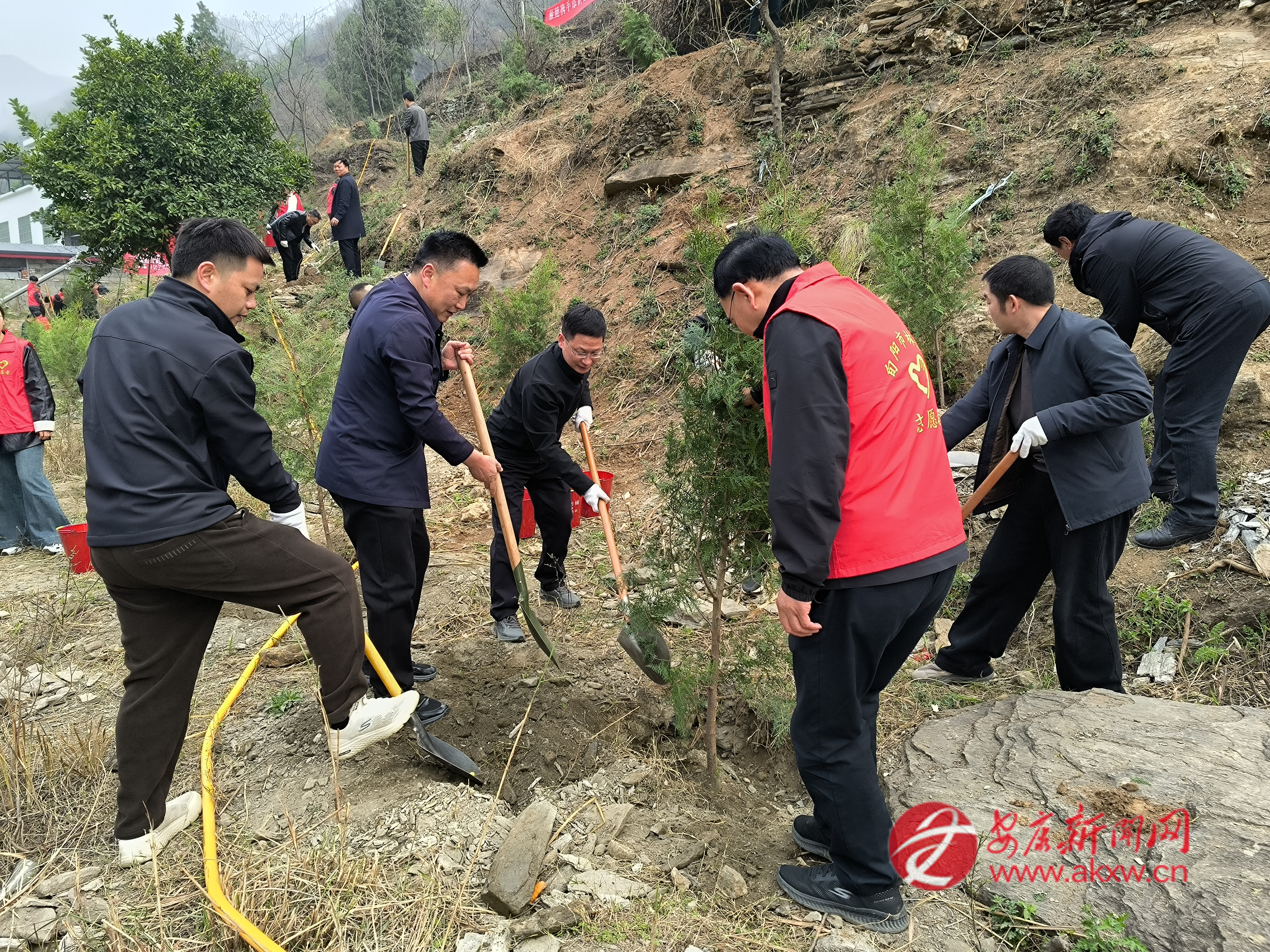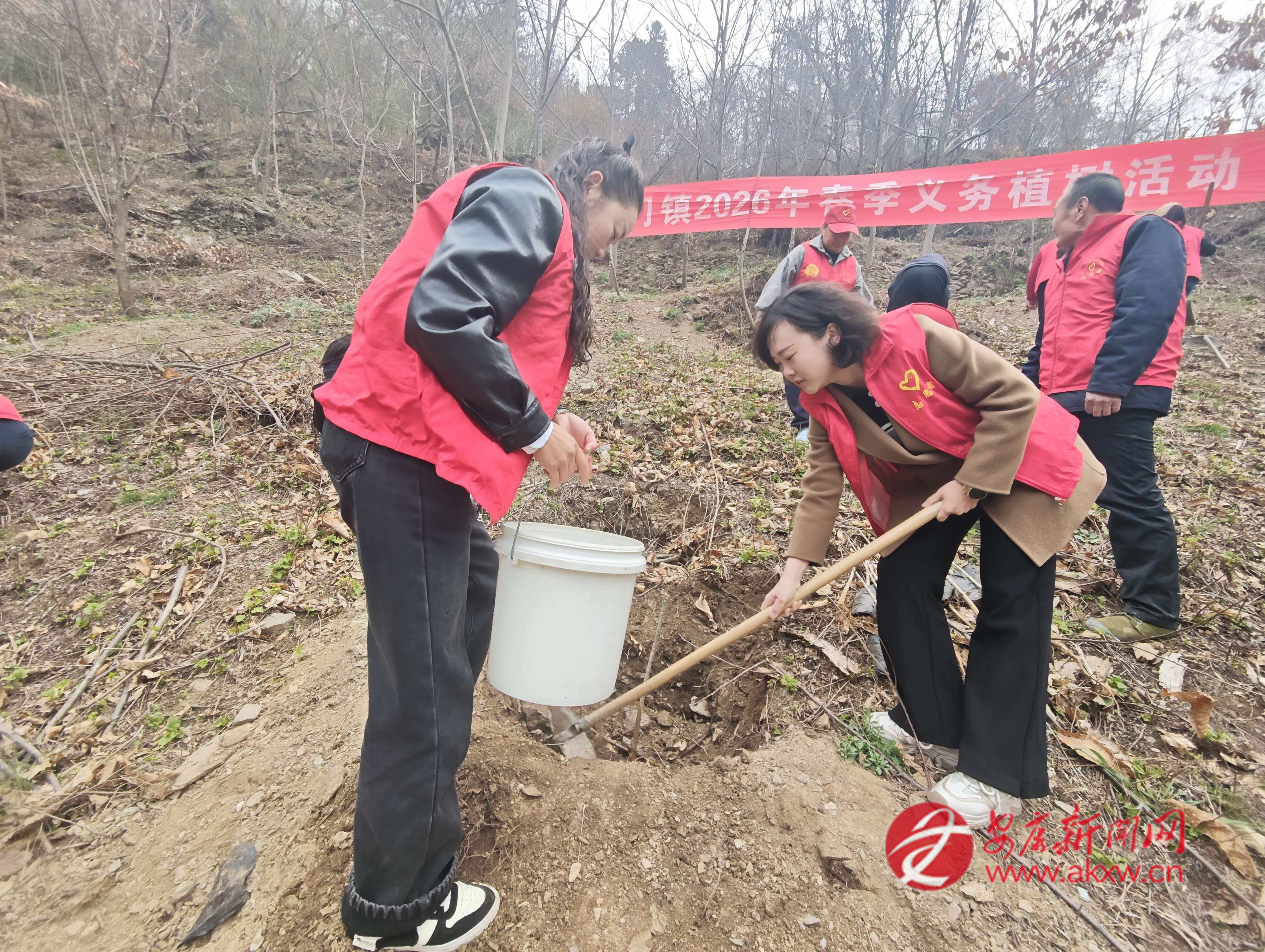 紅軍鎮(zhèn)組織機關(guān)干部、豐積社區(qū)黨員干部及群眾代表在李家院子開展義務(wù)植樹活動